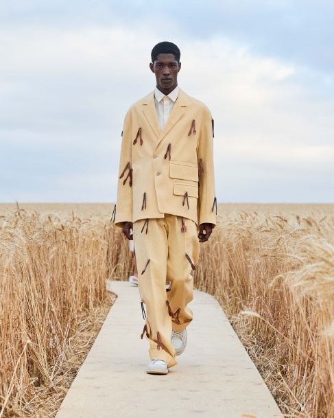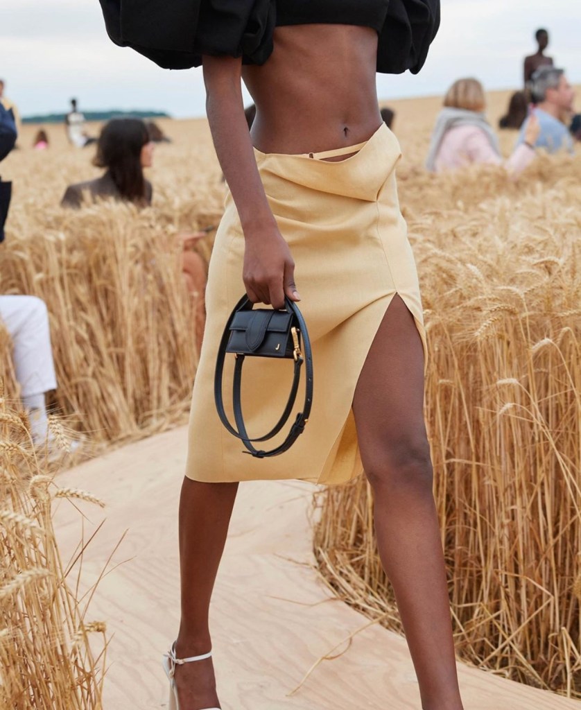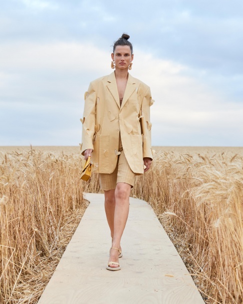 There is no doubt that since his last two shows went viral, everyone was looking forward to see the way his next show would be set up. One common theme within all of the Jacquemus shows is that he makes them all sentimental and close to where he grew up as a child. This show was surrounded by miles of hayfield in France.