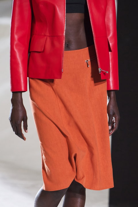 As someone who doesn’t normally go for a colorful wardrobe and I like to keep tones down, there is something so beautiful and classic about the specific colors that Vanhee-Cybulski chose. She didn’t go for an over the top yellow, or a hot bright pink, but instead the classy red, and low-key blue. Staying very chic with these specific tones of the red and the blue is another detail I love.