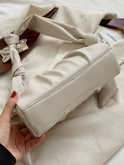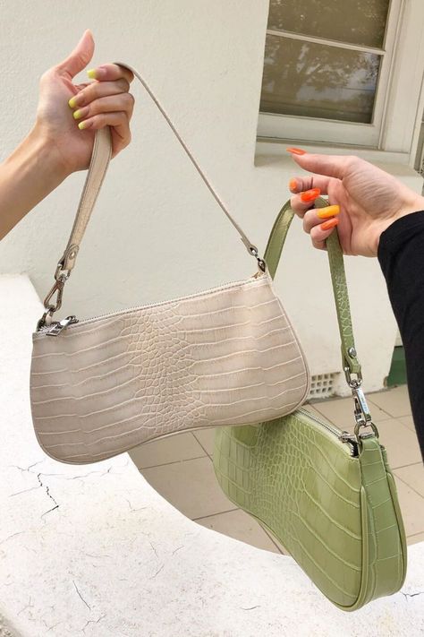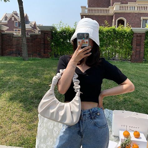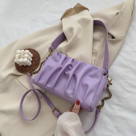 I have seen a lot of influencers wearing this one and it isn’t a very common one though. I haven’t seen too many designer versions of this bag but it is very cute. The colors also seem to range for a small palette of shades but other than that, it does seem like the same size as the baguette bag from before just with some ruched detailing. It is a little twist on your basic every go to bag and definitely is a statement look for any outfit you decide to wear.