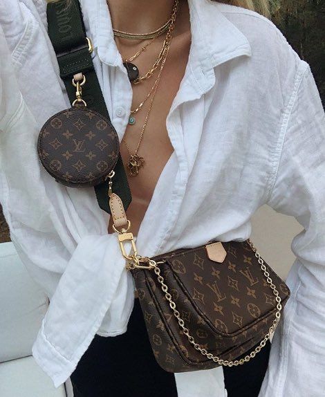 Last on this list, but definitely not least is the Louis Vuitton shoulder bags, and the pochette bag. I have seen these a lot on Instagram and Pinterest and they seem like the cutest little bags ever. Just like the Prada ones, they seem about the same size and the chain is such a nice touch to add a little color to it since they are mainly neutrals. There is a more colorful Louis which I found and put below but other than that I typically see the classic LV Logo printed all over it since that is the one that is most popular. Also can be dressed up and down for any occasion.