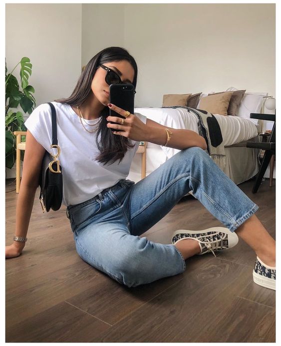Everyone needs a plain black or white t-shirt as well. These can be long sleeves and short sleeves. The amount of t-shirts that I have in my closet is honestly too much to count but it’s perfect because a lot of them don’t have any patterns or designs and are very basic. They can be worn all year round and once again, can be dressed up or down. If you just want to go on a run, throw on a basic t-shirt. If you want to have some jeans with sneakers, a bag and sunglasses, throw on the t-shirt again. Everything will look good with this and if you are panicking on what to wear for a day out, you don’t even have to put much thought into it because you just grab and go.