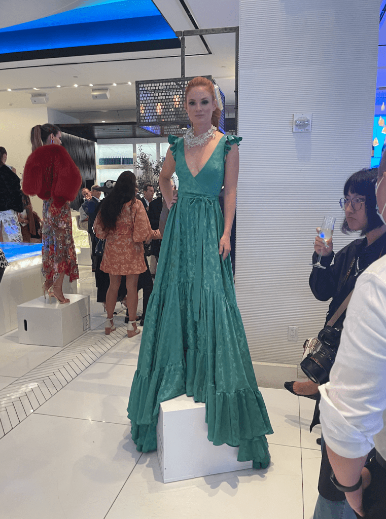 Pictured above is myself with Dennis Basso. I was able to grab a quick photo with him as he went around to chat with multiple people and speak on his collection.
