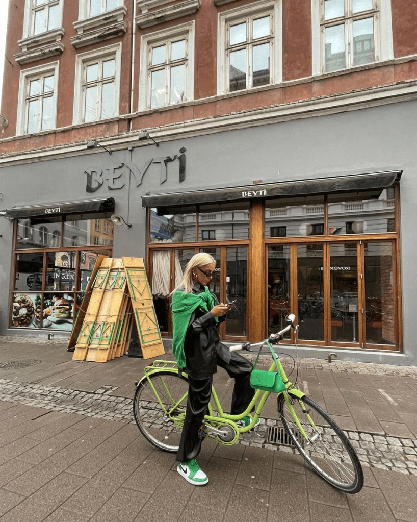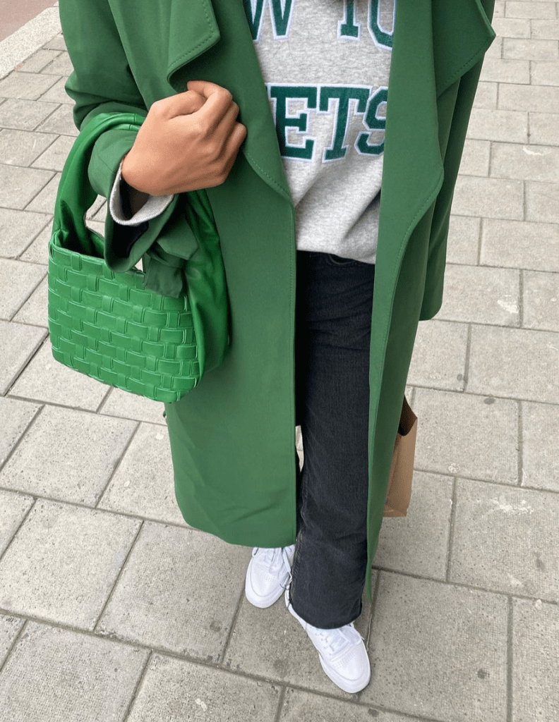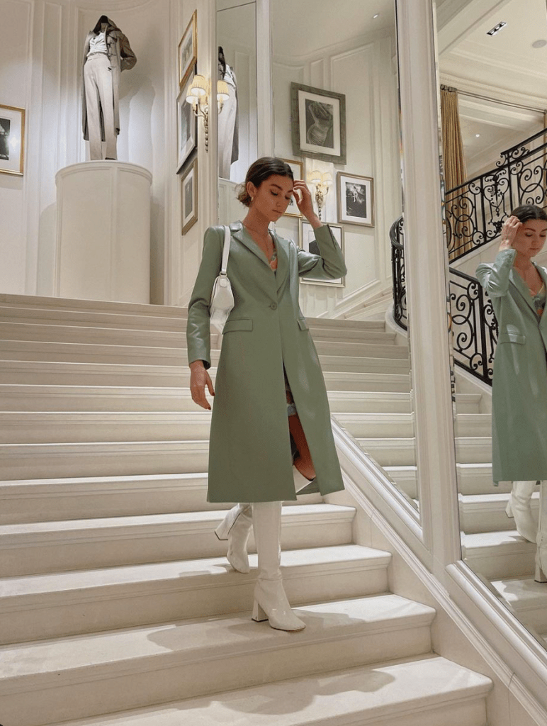 By far one of my favorite Tiktok accounts has to be Marigona. She has a diverse mix of a ton of neutrals giving minimalistic outfit inspiration to all. She does provide some pops of color every once in a while such as the green we pictured below from her Instagram, but overall her aesthetic is clean, sophisticated, and very chic. Her purses are to die for and we are obsessed with her boot collection as she seems to be have a boot and jacket or coat for almost any occasion you can think of and we’re obsessed.