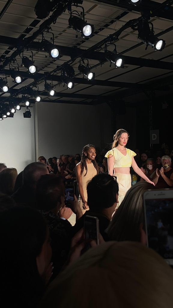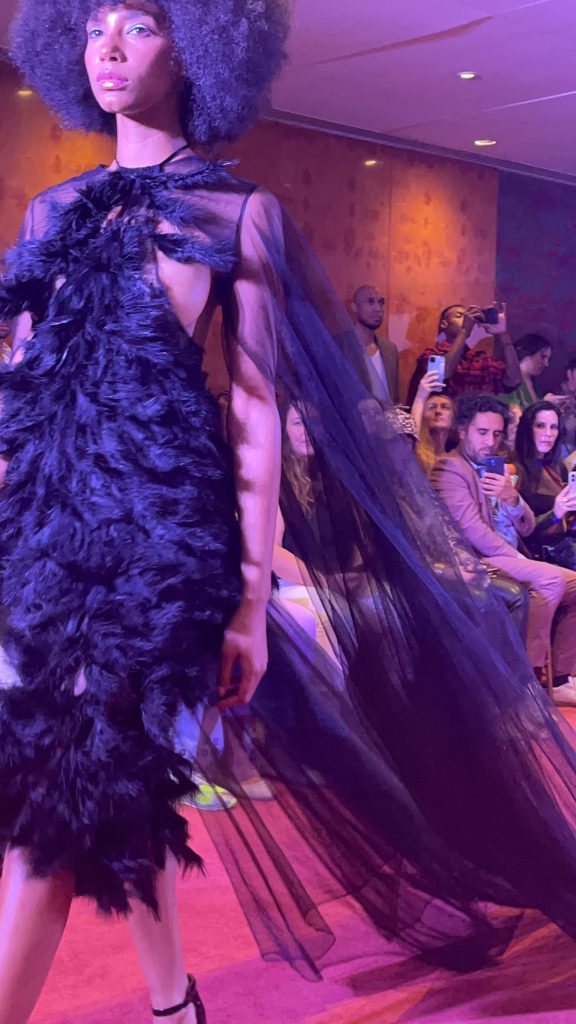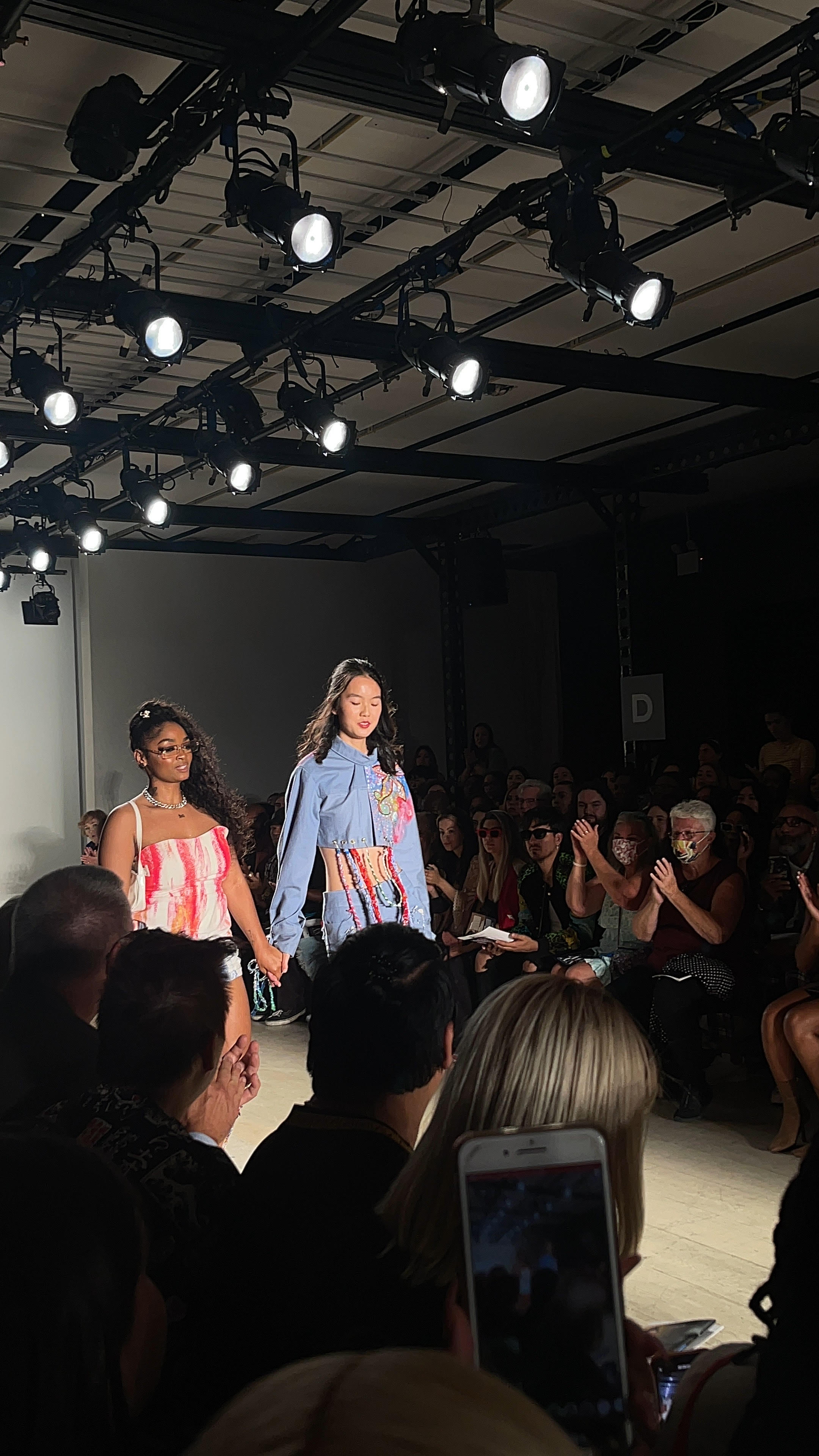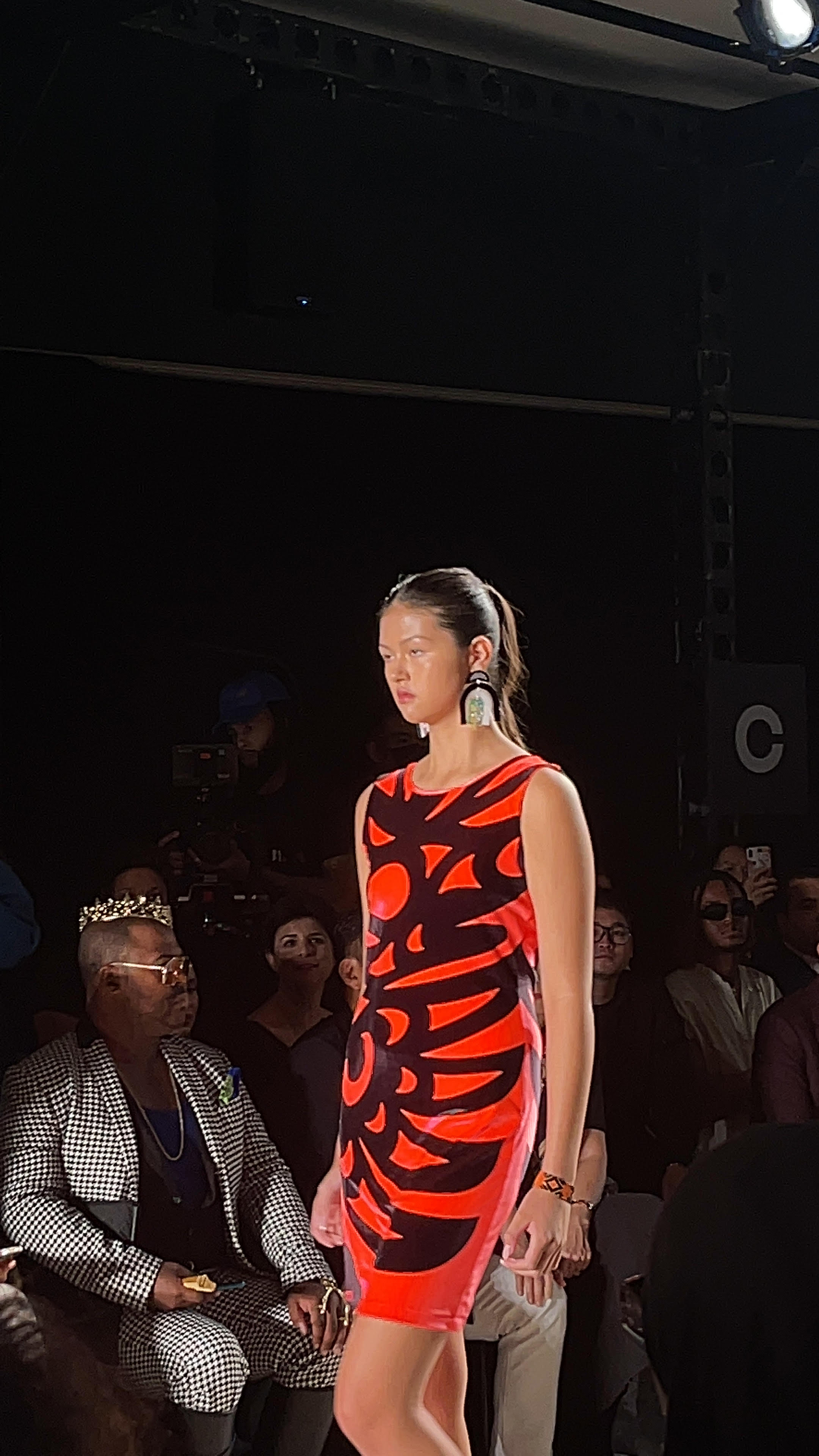 The third designer was Ay Lelum from British Columbia, Canada. This show and collection were very reflective of their indigenous Snuneymuxw culture. The collection included feathers, bold colors, and organic shapes. Everything from the outfits to the music played made you feel like you were transported to somewhere outside of the venue. It even felt as if we were there visiting their community in Canada. Overall, the show and collection was very moving and intriguing.