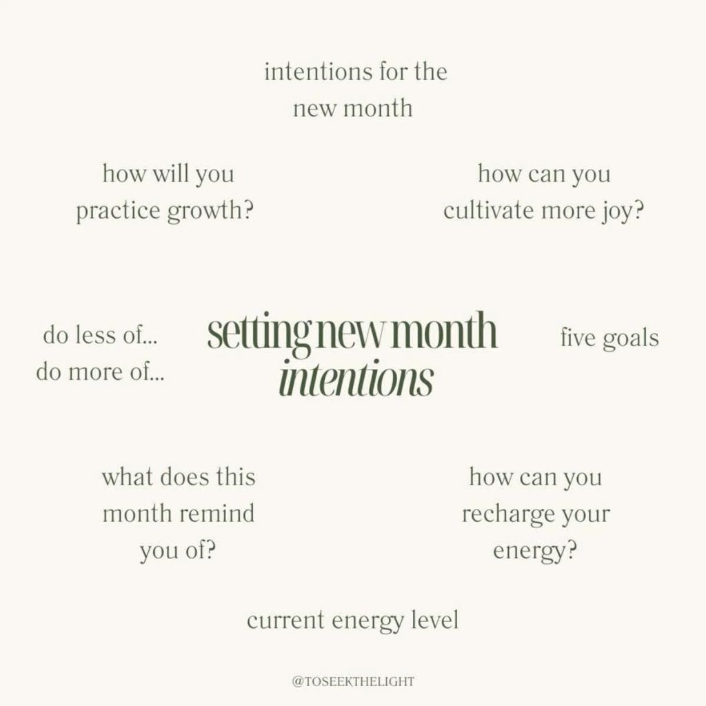 Let’s take it back to more about intentions, energy and your to-do list. We all know we have a never ending to-do list with things that keep coming from every month and now we’re in too deep to get any of those things done. Instead of continuing to pile on this list, break it down into realistic tasks for yourself and try to get this done in this new month ahead. What new habits do you need to establish to get these things done, what mindset do you need to begin to tap into and what do you want to feel more of this month? Ask yourself these questions and begin.